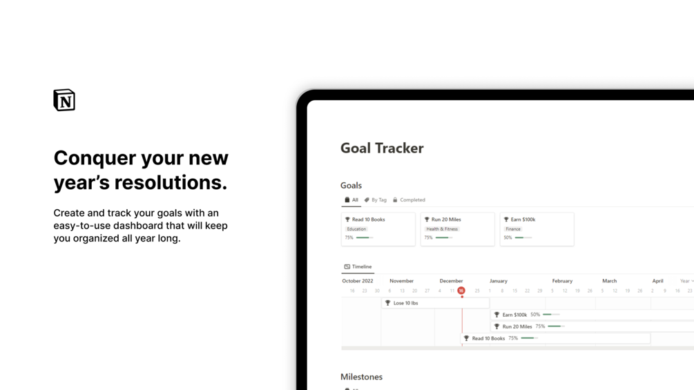 Whether you're a beginner or a seasoned goal-setter, the Notion Goal Tracker is the perfect tool to help you achieve your new year's resolutions and beyond.